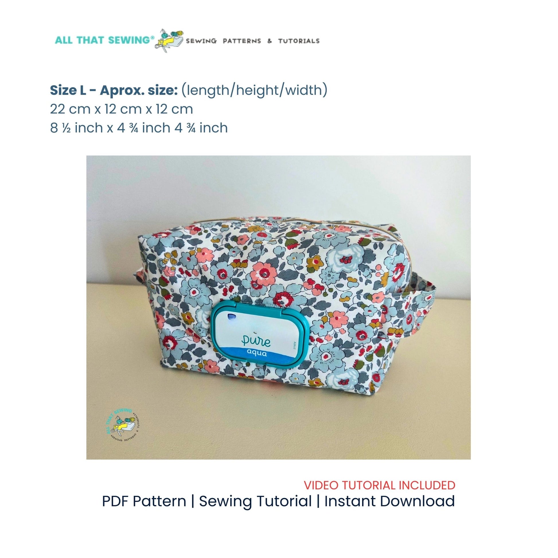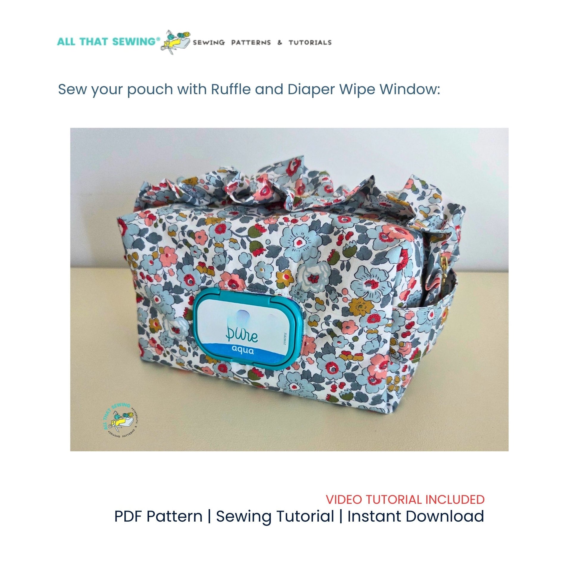 A Boxy Bag Pattern , with detailed step by step photo and video tutorial! This PDF of a Boxy Pouch that can be made with a Ruffle and a Diaper Wipe window - includes steps on how to adjust the window size for any brand you use.