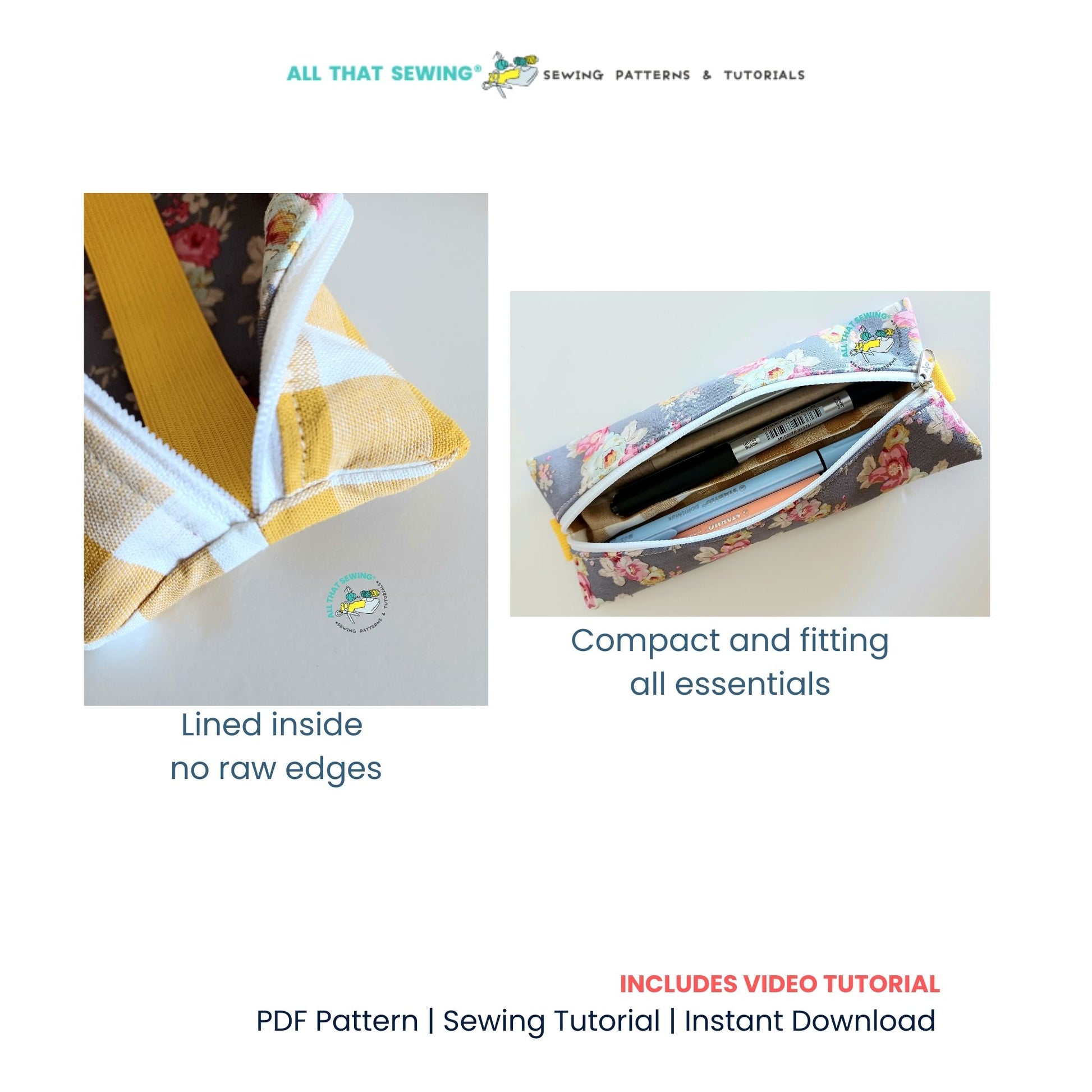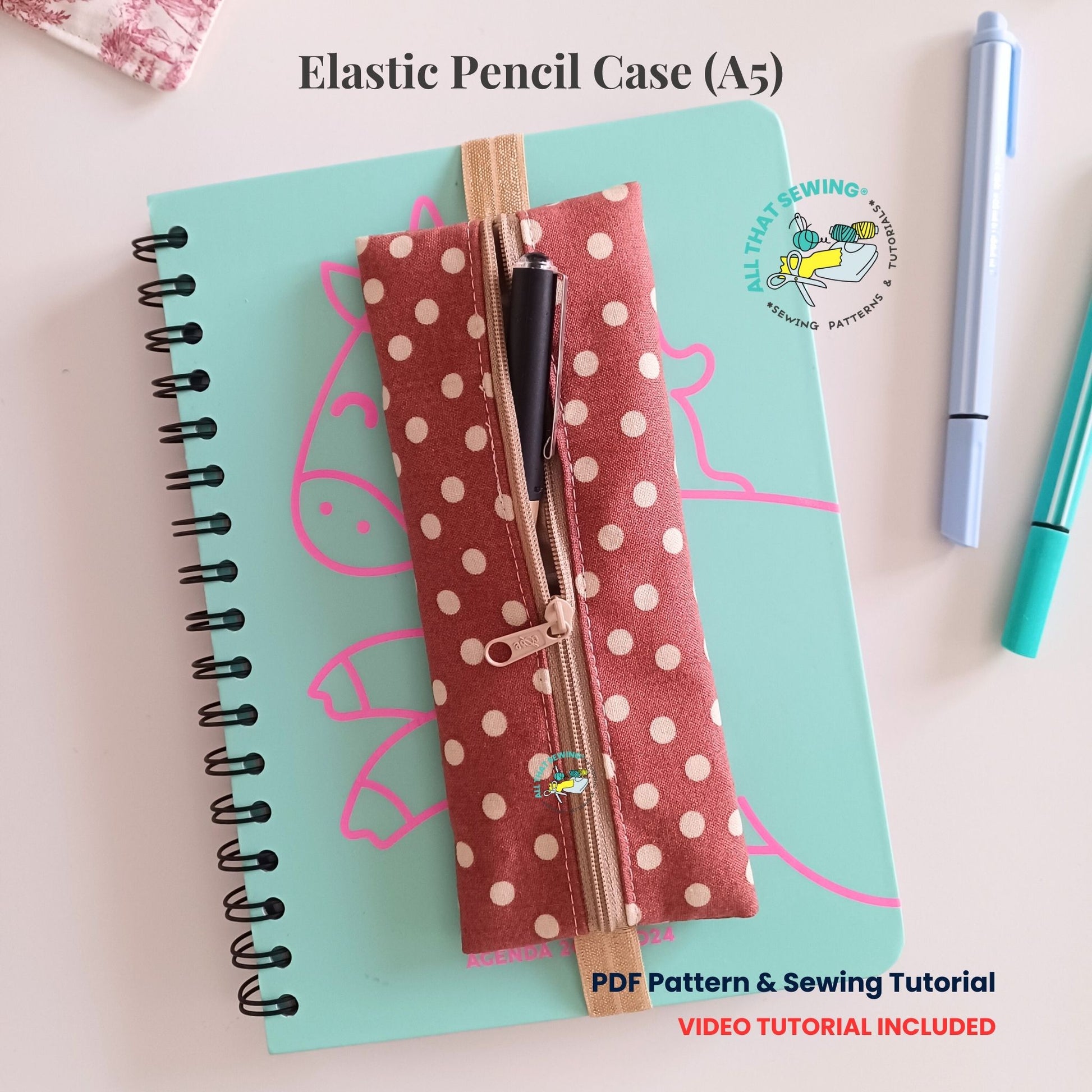 PDF sewing pattern of an elastic pen case for an A5 Agenda, Journal, Notebook or Planner! This pencil case is fully lined inside, with no raw edges and super easy to make!