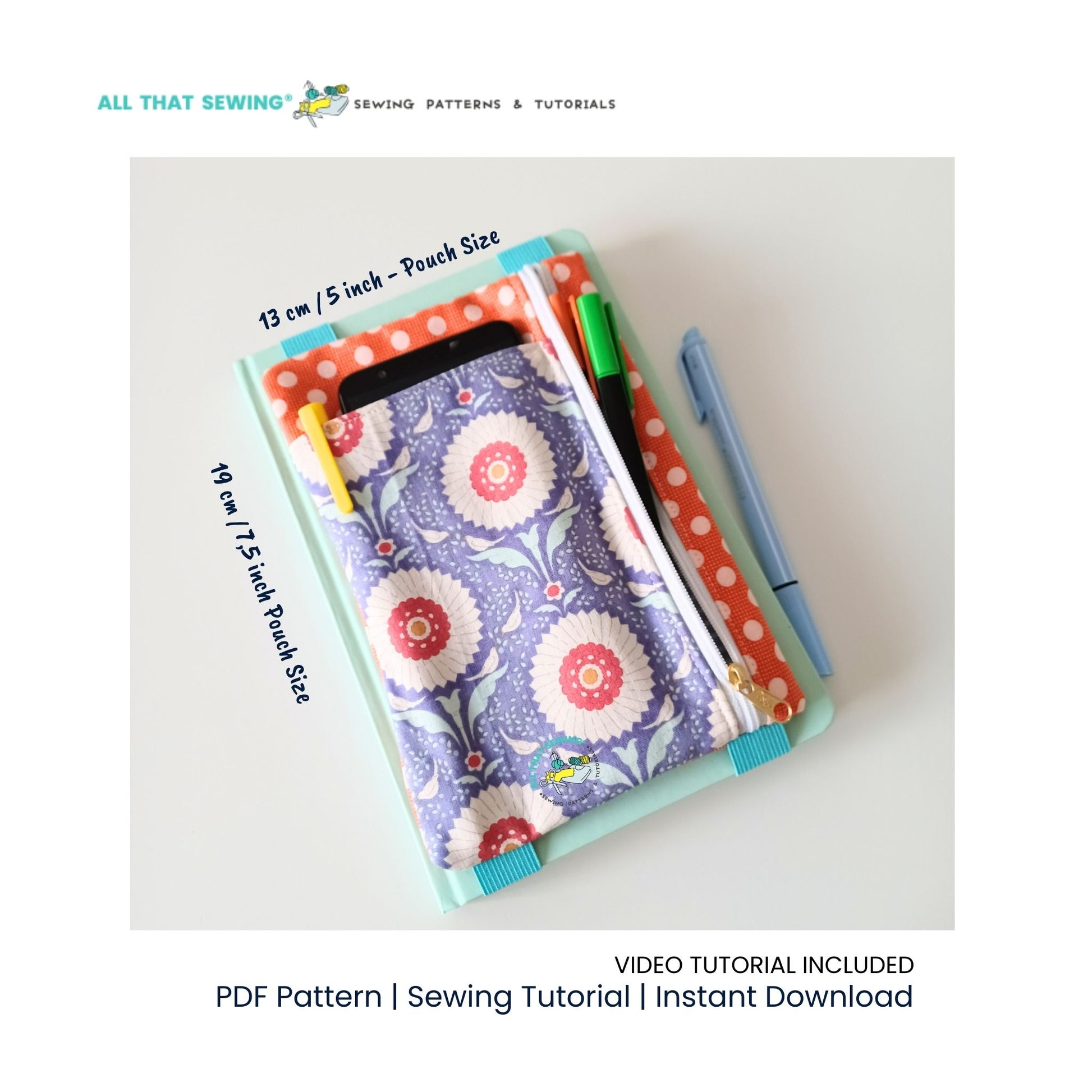 PDF sewing pattern and VIDEO Tutorial of a Planner Pouch to keep your pen and phone close to it. A great zipper pencil case for your book or journal. Now with an improved pattern version - much easier and faster to make! (this pattern has been tested and approved by small handmade business owners)