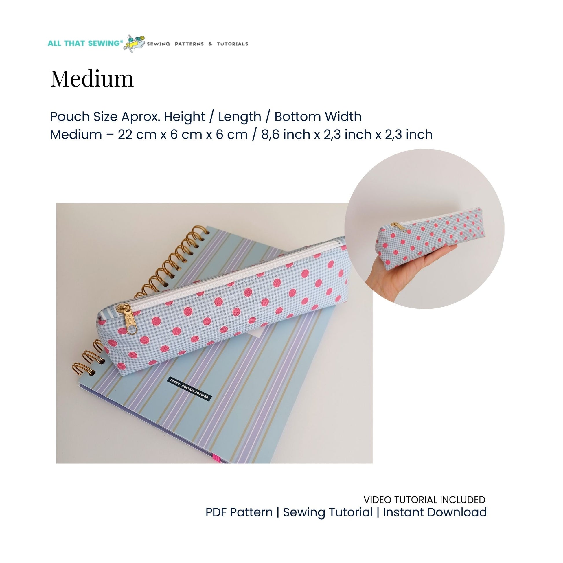 PDF Sewing Pattern of a Zipper Pouch in an original triangle/ tent shape in 3 sizes set. Different sized storage for different needs: coametics, makeup, pencils, etc..
